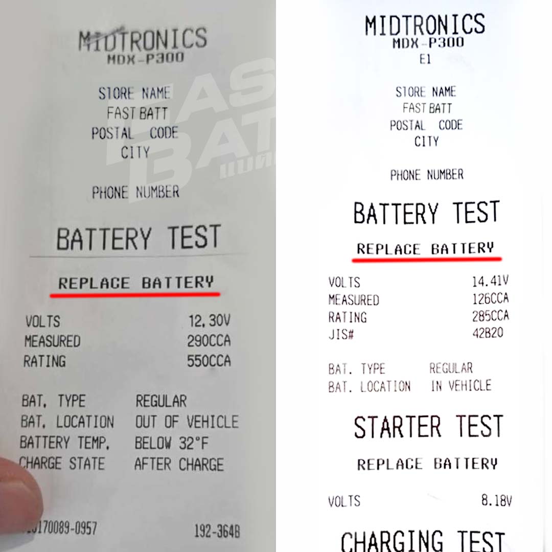 ค่าต่างๆ จากใบปริ๊นผลทดสอบแบตเตอรี่จากศูนย์บริการ เมื่อเครื่องตรวจวัดแบตเตอรี่แจ้งว่า REPLACE BATTERY หรือ BAD CELL นั้นหมายความว่าแบตเตอรี่ของเรานั้นเสื่อมสภาพเป็นที่เรียบร้อยแล้ว แนะนำให้หาร้านเปลี่ยนแบตเตอรี่โดยด่วน เพราะรถของเรามีโอกาสที่จะสตาร์ทไม่ติดได้ทุกเมื่อ เนื่องจากผลทดสอบจากเครื่องวัดของศูนย์บริการจะบอกสถานะของแบตเตอรี่ได้อย่างแม่นยำที่สุด แล้วค่าต่างๆ เหล่านี้ที่แสดงอยู่บนสลิปใบปริ๊นมีค่าอะไรบ้างมาดูกันครับ