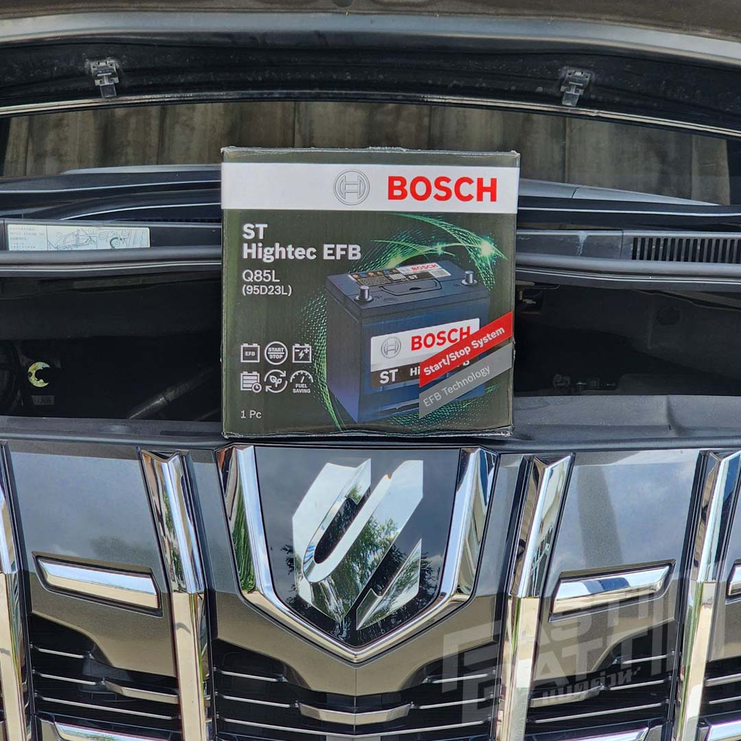 2. รถยนต์ Toyota Alphard Vellfire แบตเตอรี่ส่วนหน้ารถใช้แบตเตอรี่ขั้วลอย เหมาะกับแบตเตอรี่ ที่มีขนาด D23 อย่าง BOSCH EFB Q85L แต่สำหรับรถยนต์ Toyota Alphard Vellfire ตั้งแต่ปี 2020 เป็นต้นไป จะใช้เป็นแบตเตอรี่ขั้วจม อย่าง DIN56219 และ AGM / EFB LN2