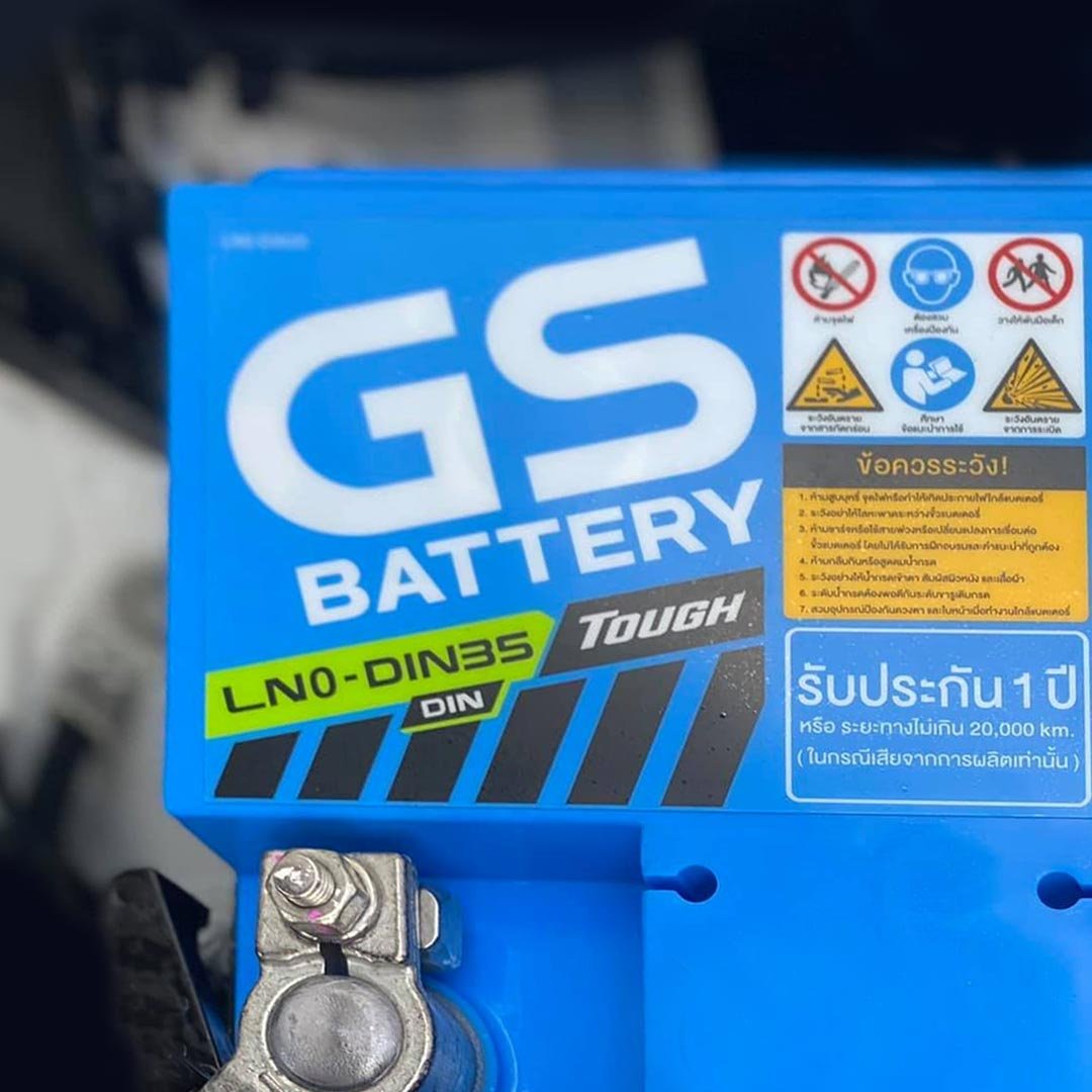 GS Battery รุ่น LN0-DIN35 แบตเตอรี่รุ่นนี้ออกวางจำหน่ายเมื่อ กรกฎาคม 2021 จุดเด่นของแบตเตอรี่รุ่นนี้ก็คือเป็นเพียงแบตเตอรี่รุ่นเดียวที่สามารถติดตั้งแทนแบตเตอรี่เดิมได้ทันที โดยไม่ต้องดัดแปลงใดๆ เป็นรุ่นขนาดที่ถูกต้อง และราคาสบายกระเป๋าแบบสุดๆ ครับ