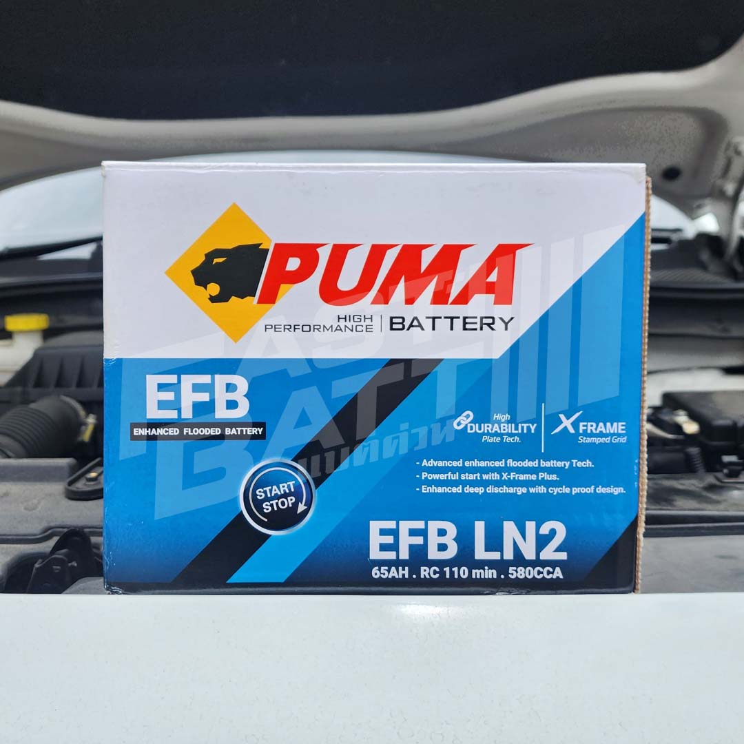 *แบตเตอรี่ PUMA EFB LN2 จุดเด่นของแบตเตอรี่รุ่นนีก็คือ ขนาด 65 แอมป์เต็ม กำลังสตาร์ทสูง EFB BATTRERY แบตเตอรี่อิเล็กโทรไลต์เหลวขั้นสูง การออกแบบใช้แผ่นตะกั่วหนาซึ่งมีความจุขนาดใหญ่ และความเร็วในการชาร์จกลับ ส่วนตัวผมเชียร์แบตเตอรี่รุ่นนี้ เพราะเหมาะสมด้วยราคา คุ้มค่า ทนทาน แนะนำครับ