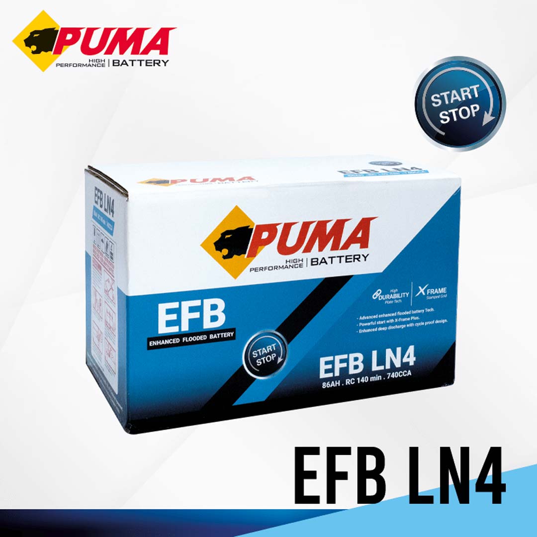 PUMA EFB LN4 รองรับการสตาร์ทเครื่องยนต์ได้มากว่า SMF 3 เท่า จ่ายไฟในขณะที่เครื่องยนต์หยุดทำงาน อายุการใช้งานมากกว่า 30,000 Cycles ช่วยลดก๊าซคาร์บอนไดออกไซด์ ประมาณ 3-5% และทำให้ประหยัดน้ำมันได้ถึง 3-5% อีกด้วย