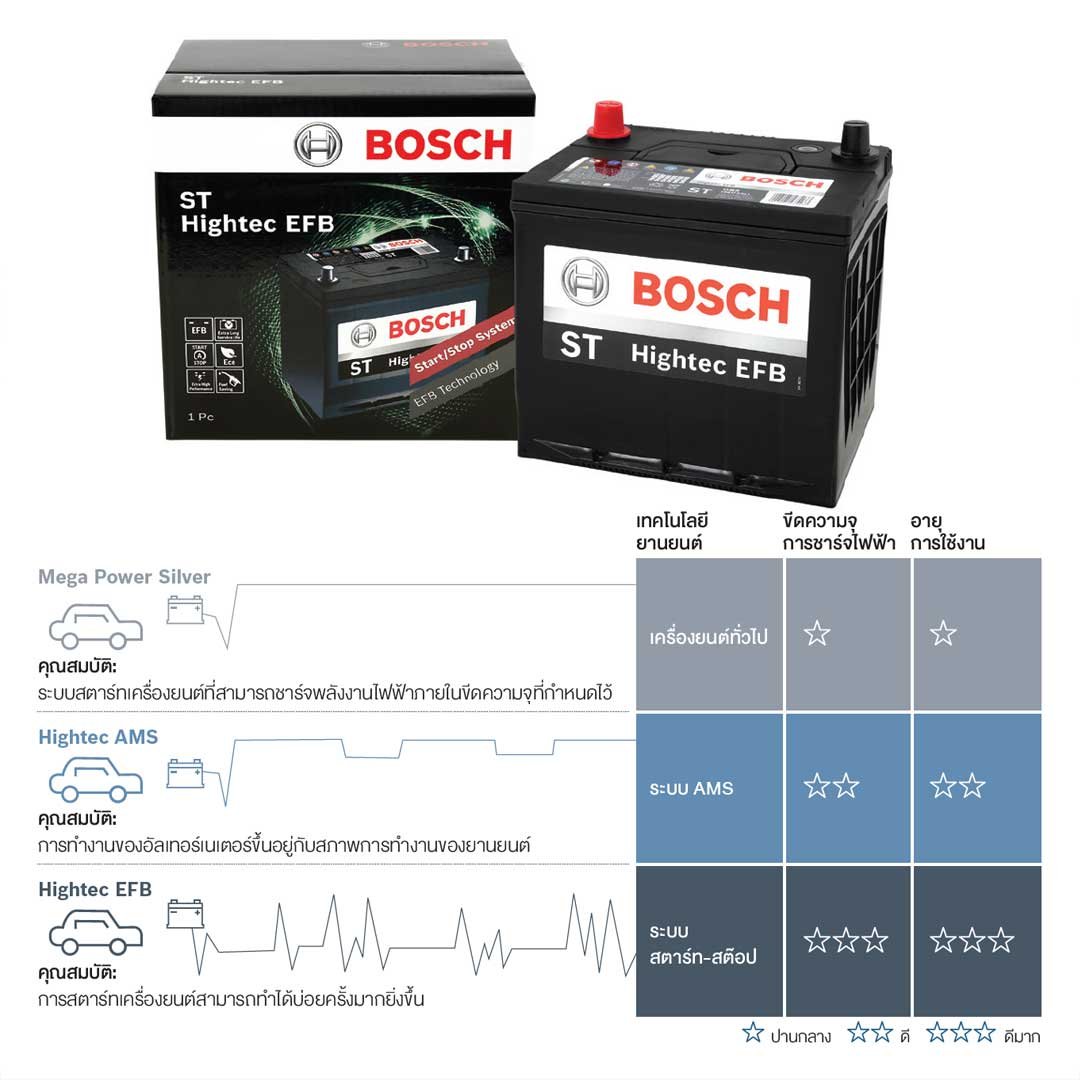 ถ้าลูกค้ามีงบประมาณ (ส่วนตัวผมคิดว่าไม่แพง) และต้องการแบตเตอรี่คุณภาพสูงให้กับรถที่เรารัก แบตเตอรี่ "แบรนด์ยุโรป" ขนาด 55 แอมป์ ทางร้านขอแนะนำพี่ใหญ่อย่าง *BOSCH EFB N-55L (70B24L) ขนาด 55 แอมป์ จุดเด่นของแบตเตอรี่รุ่น EFB ก็คือ การออกแบบใช้แผ่นตะกั่วหนาซึ่งมีความจุขนาดใหญ่ และความเร็วในการชาร์จกลับ โดย EFB BATTRERY นั้นได้ก้าวเข้ามาเป็นตัวเลือกสำคัญ สำหรับลูกค้าที่ใช้รถยนต์ในยุคปัจจุบัน รุ่นนี้แนะนำเลยครับ