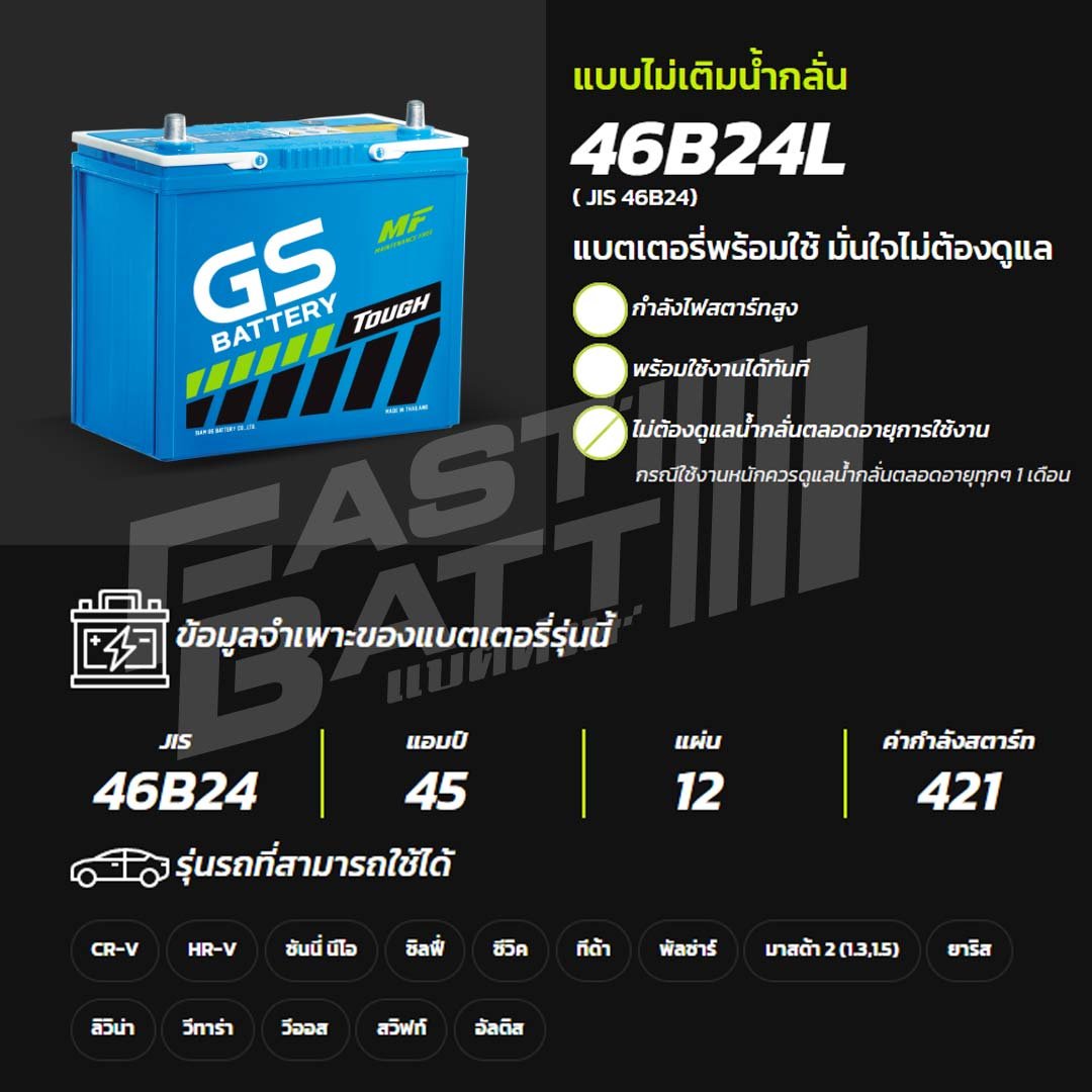 *GS MFX60L (55B24) ขนาด 50 แอมป์ จุดเด่นเป็นแบตเตอรี่กึ่งแห้งที่ ไม่ต้องดูแลน้ำกลั่น กำลังสตาร์ทสูง และราคาไม่แพงครับ