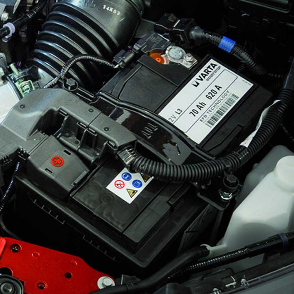 โดยเครื่องยนต์ จะหยุดทำงาน ทุกครั้งที่รถจอดหยุดนิ่ง แบตเตอรี่จะเป็นผู้รับภาระจ่ายกระแสไฟฟ้า ให้อุปกรณ์ไฟฟ้า ทุกชนิดขณะเครื่องยนต์หยุดทำงาน โดยแบตเตอรี่รถยนต์จะทำงานหนักมากๆ ซึ่งแบตเตอรี่ที่รองรับระบบ START STOP เราเรียกแบตเตอรี่ชนิดนี้ว่า EFB BATTRERY โดย EFB BATTRERY นั้นได้ก้าวเข้ามาเป็นตัวเลือกสำคัญ สำหรับลูกค้าที่ใช้รถยนต์ระบบ START STOP ในยุคปัจจุบัน