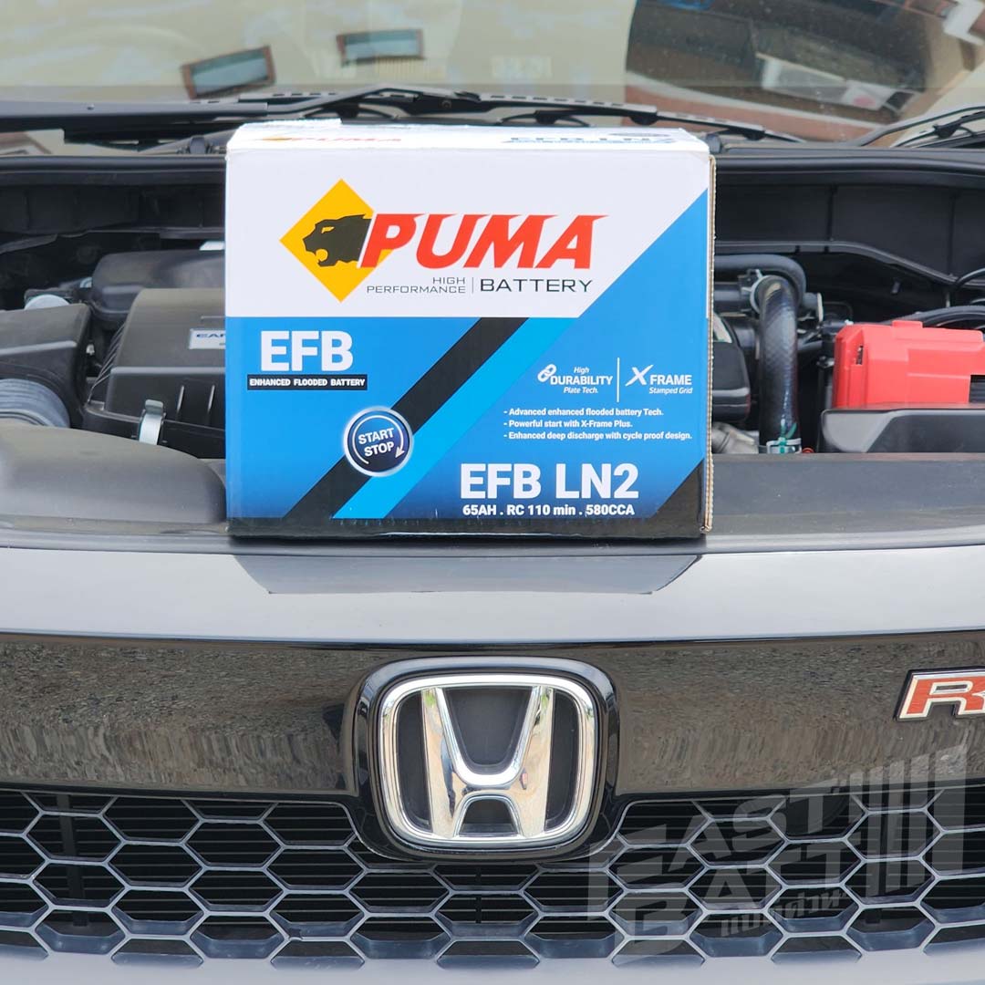 PUMA เแบตเตอรี่เกรดคุณภาพเทคโนโลยีเยอรมันนี ผู้นำด้านการผลิตแบตเตอรี่ชนิดพิเศษที่รองรับระบบ START STOP อย่าง AGM BATTERY และ EFB BATTERY แบตเตอรี่ PUMA EFB LN2 เป็นแบตเตอรี่ระบบปิด ไม่ต้องเติมน้ำกลั่นตลอดอายุการใช้งาน รักษาการสูญเสียไอน้ำกรดดีเยี่ยม ไม่รั่วไหล แผ่นธาตุมาจากการรีดให้มีความหนาแน่นสูง ทำให้การต้านทานไฟฟ้าต่ำ กระแสไฟฟ้าเคลื่อนที่รวดเร็ว รองรับการสตาร์ทเครื่องยนต์ได้มากว่า SMF 3 เท่า จ่ายไฟในขณะที่เครื่องยนต์หยุดทำงาน อายุการใช้งานมากกว่า 30,000 Cycles ช่วยลดก๊าซคาร์บอนไดออกไซด์ ประมาณ 3-5% และทำให้ประหยัดน้ำมันได้ถึง 3-5% อีกด้วย เหมาะสมด้วยราคา และขนาดที่ถูกต้อง และรองรับระบบ Idling Stop ครับ