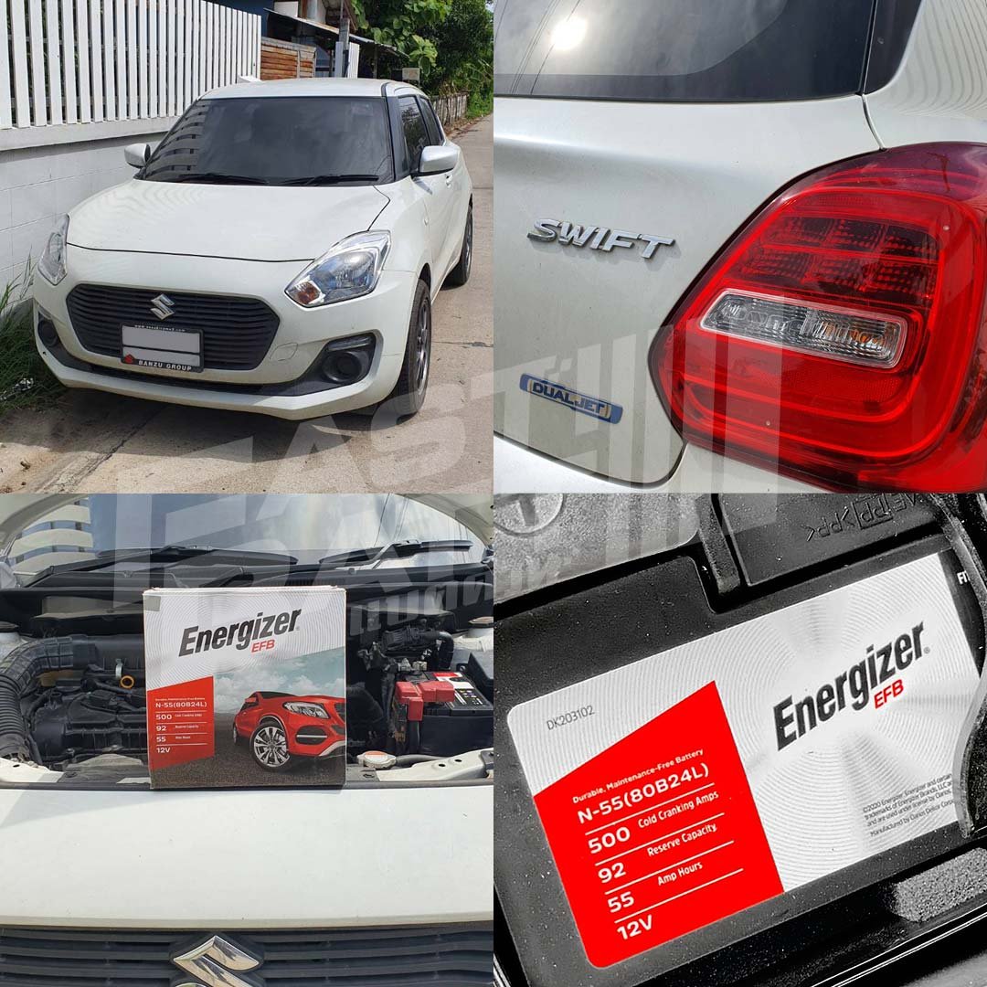 Suzuki Swift 1.2 รุ่นใหม่ ไม่สามารถใช้แบตเตอรี่รุ่นธรรมดาได้ แนะนำต้องใช้แบตเตอรี่ชนิด EFB เท่านั้น โดยผมขอแนะนำแบตเตอรี่ชนิด EFB ที่รองรับระบบ i-stop สเปคสูงกว่าแบตเตอรี่ติดรถจะศูนย์นะครับ