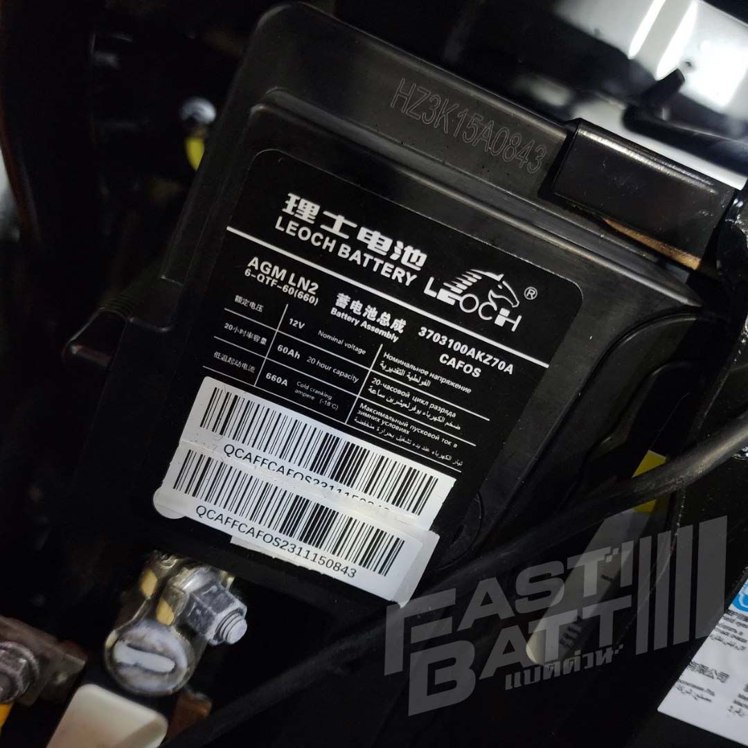HAVAL Jolion Hybrid 2021-2024 มาพร้อมกับแบตเตอรี่เกรดคุณภาพสูง ชนิดขั้วจมมาตรฐานยุโรป (DIN) รุ่น LN2 6-QTF-60(660)-L ขนาด 12V ความจุ 60Ah กำลังสตาร์ท CCA 660A (แบตเตอรี่ AGM) OEM จาก LEOCH BATTERT