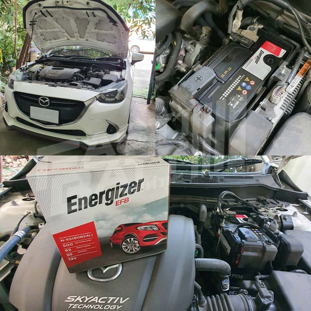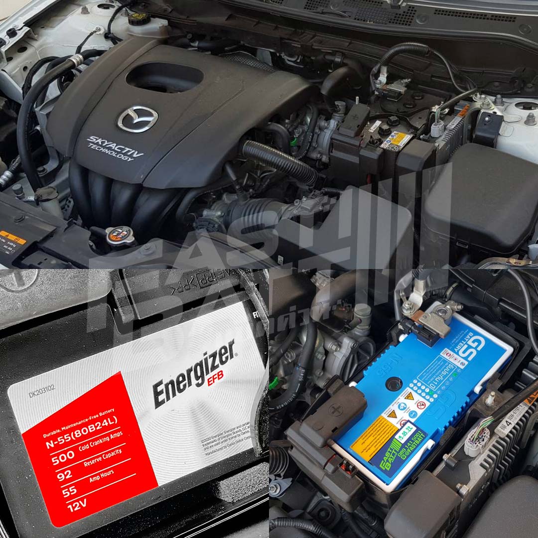 - Mazda 2 Skyactiv-G 1.3 เบนซิน ปี 2015-2023 ใช้ EFB 55 แอมป์