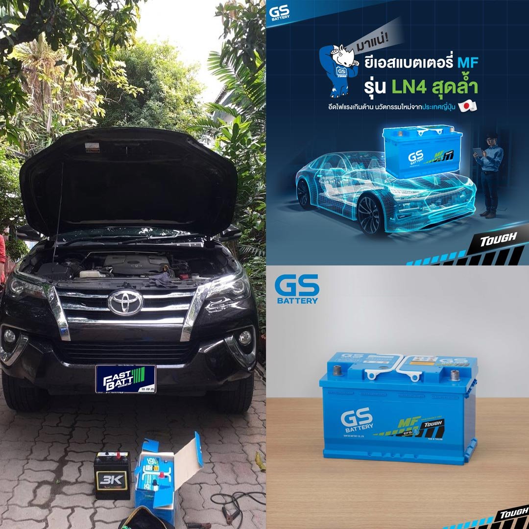 Toyota All new Fortuner 2.8 ดีเซล มาพร้อมระบบ Auto Start-Stop ใช้แบตเตอรี่ชนิดพิเศษ EFB BATTRERY รองรับ ระบบ Auto Start Stop โดยเฉพาะ แบตเตอรี่ในกลุ่ม EFB 385LN4-ISS (Idling Stop System) จะราคาสูงกว่าแบตเตอรี่ทั่วไป โดยทางร้านขอแนะนำแบตเตอรี่ราคาเป็นมิตรที่สุด และคุณภาพถือว่าเป็นเบอร์ต้นๆ เลยก็ว่าได้สำหรับแบตเตอรี่ในกลุ่มนี้ *GS LN4-DIN90 EFB ขนาด 90 แอมป์ (DIN90) จุดเด่นของแบตเตอรี่รุ่นนี้คือตะกั่วหนา ทนทาน แอมป์สูง กำลังสตาร์ทสูง ออกแบบมาเพื่อรองรับ Auto Start Stop โดยเฉพาะ ขอแนะนำว่าแบตเตอรี่รุ่นนี้คุ้มค่าน่าสนใจจริงๆ ครับ