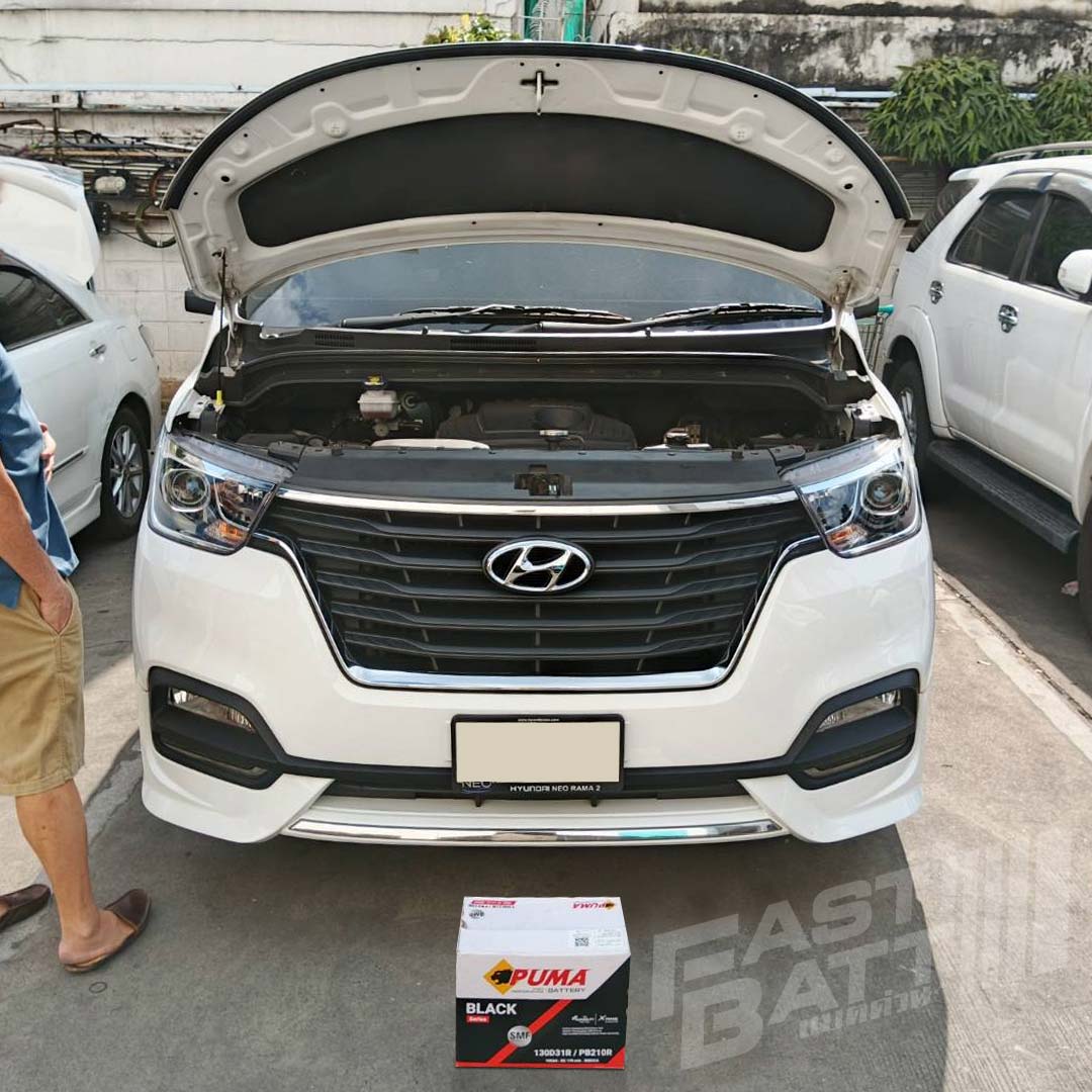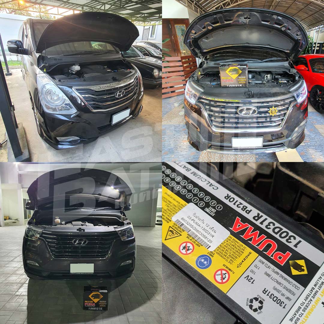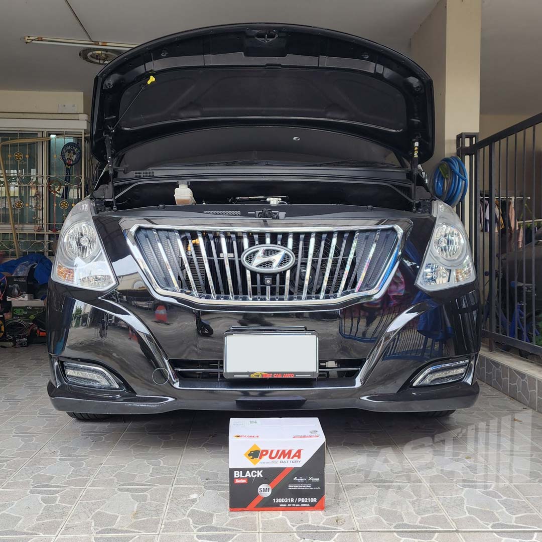 Hyundai H-1 มาพร้อมกับแบตเตอรี่ OEM CMF90R-BIC 12V ขนาด 90 แอมป์ และมีกำลังสตาร์ทที่ 720 CCA (แบตเตอรี่รุ่นนี้ที่ศูนย์บริการ Hyundai ก็ไม่มีจำหน่าย) โดยแบตเตอรี่ทดแทนที่จำหน่ายที่ศูนย์บริกาารจะเป็นรุ่น 31-PUMA-CMF 100R มีราคาสูงถึง 5,985 บาท ไม่รวมค่าแรง และความพิเศษของแบตเตอรี่สำหรับ Hyundai H-1 นั้นมีความพิเศษกว่าแบตเตอรี่รุ่นอื่นๆ ก็คือ เป็นแบตเตอรี่ขั้วขวา (R) และจะมีฐานไว้เป็นตัวช่วยล็อค Base Hold Down (ผมจะเรียกว่า ตีน แบตเตอรี่) ซึ่งแตกต่างจากแบตเตอรี่รุ่นอื่นๆ