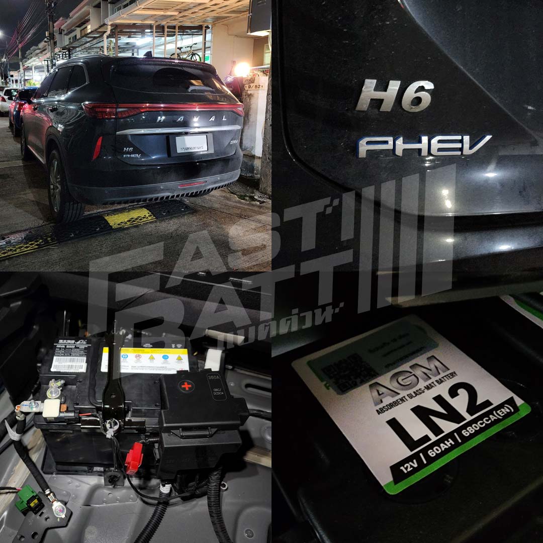 แบตเตอรี่สำหรับ HAVAL H6 PHEV บนแบตเตอรี่ระบุชัดเจนว่าเป็น AGM LN26-QTF-60(660)-L โดยที่ทางศูนย์บริการก็แนะนำให้ H6 HEV และ H6 PHEV ติดตั้งแบตเตอรี่ชนิด AGM