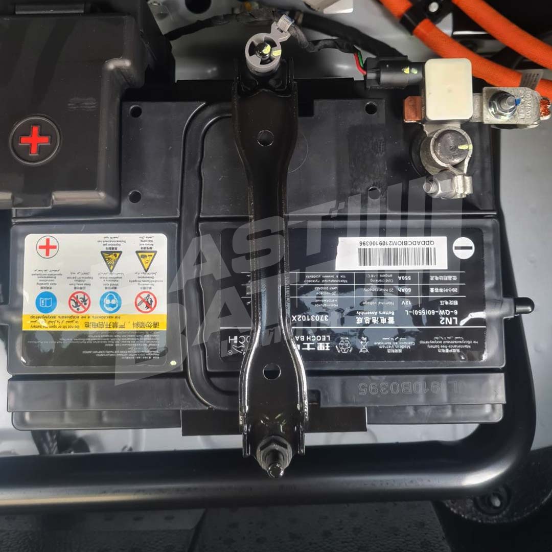 ภาพตัวอย่างแบตเตอรี่ HAVAL H6 HEV H6 PHEV พร้อมท่อเชื่อมต่อ(ท่อเล็กๆ ทางด้านขวามือ) เพื่อระบายแก๊สออกจากตัวรถ โดยการติดตั้งแบตเตอรี่ที่ถูกต้องตรงรุ่น ต้องสามารถเชื่อมต่อท่อระบายแก๊สออกจากตัวรถได้ ไม่ดมแก๊ส