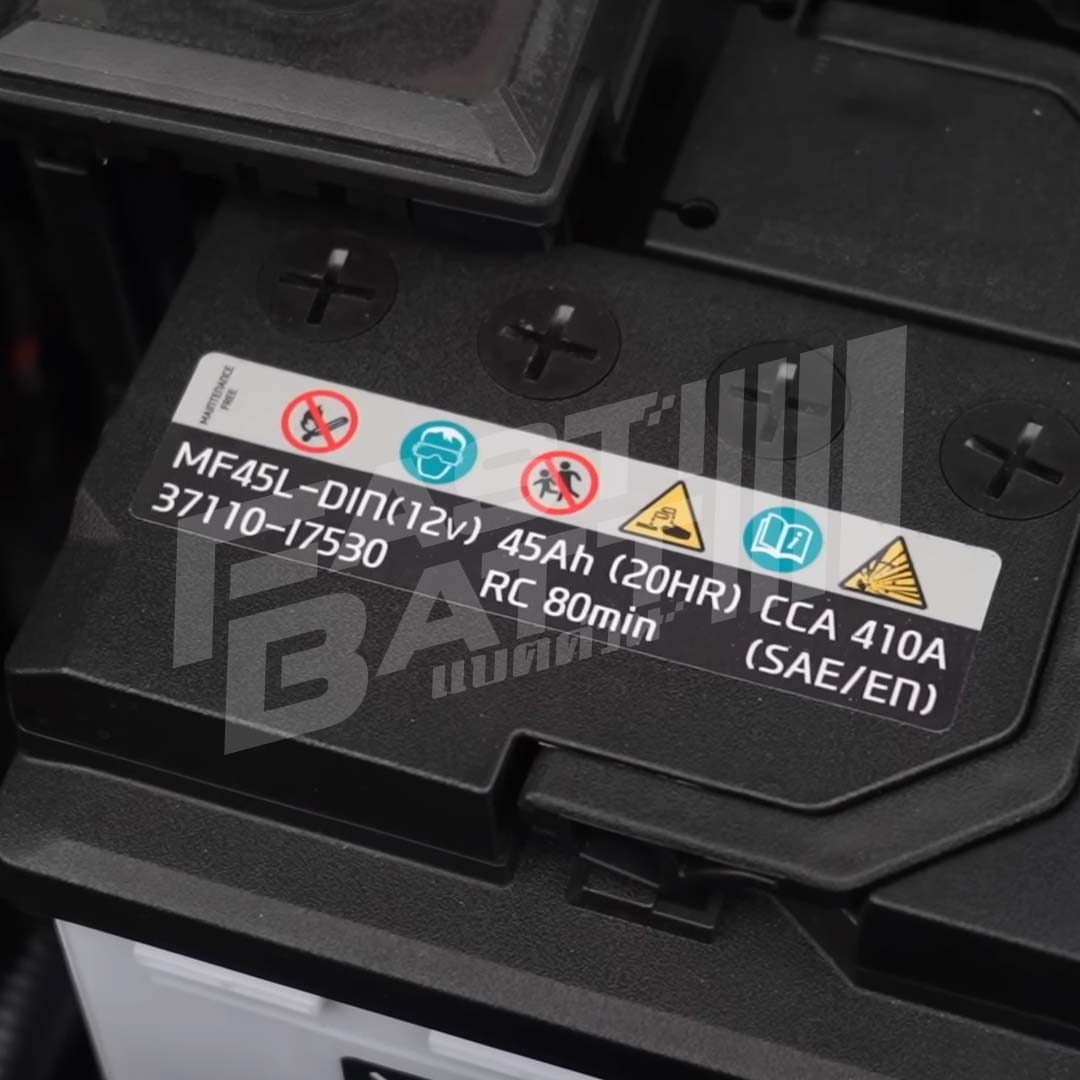 โดยแบตเตอรี่ที่มาพร้อมกับรถคือรุ่น 37110-17530 MF45L-DIN สำหรับ Hyundai STARGAZER (ปี 2023 - ) แบตเตอรี่มีค่าพื้นฐาน ขนาดของแอมป์อยู่ที่ 45 แอมป์ และมีกำลังสตาร์ท (CCA) ประมาณ 410 CCA เป็นแบตเตอรี่ชนิดกึ่งแห้งที่ต้องดูแลน้ำกลั่น ศูนยบริการ ราคา 4,700 บาท ไม่รวม Vat เป็นแบตเตอรี่ชนิดกึ่งแห้งที่ต้องดูแลน้ำกลั่น