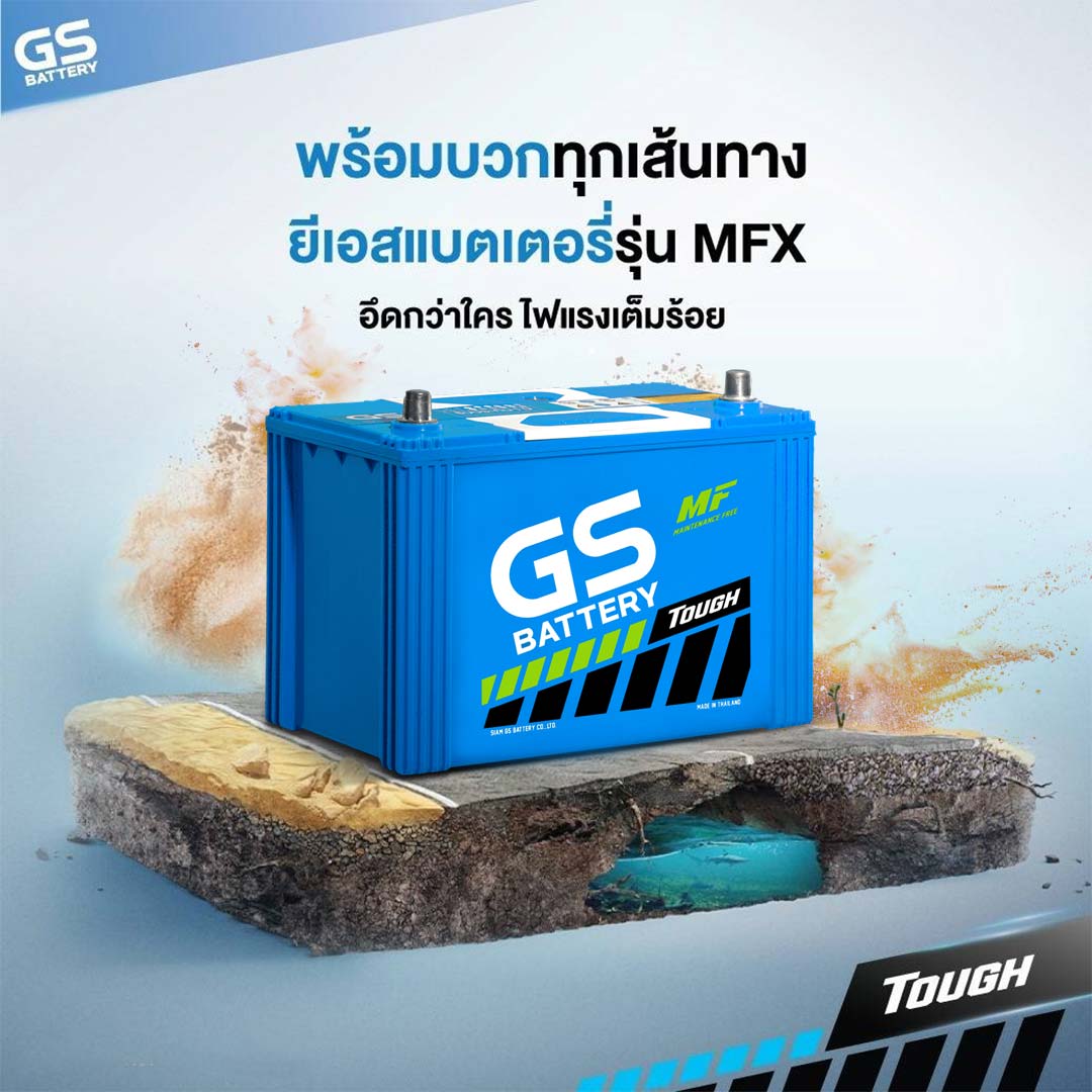 *แบตเตอรี่ GS MFX190 ขนาด 90 แอมป์ และ MFX200 ขนาด 100 แอมป์ แบตกึ่งแห้งยุคใหม่ที่ไม่จำเป็นต้องดูแลนำกลั่น กำลังสตาร์ทสูง ถือว่าเป็นรุ่นที่มี CCA สูงที่สุดในกลุ่ม