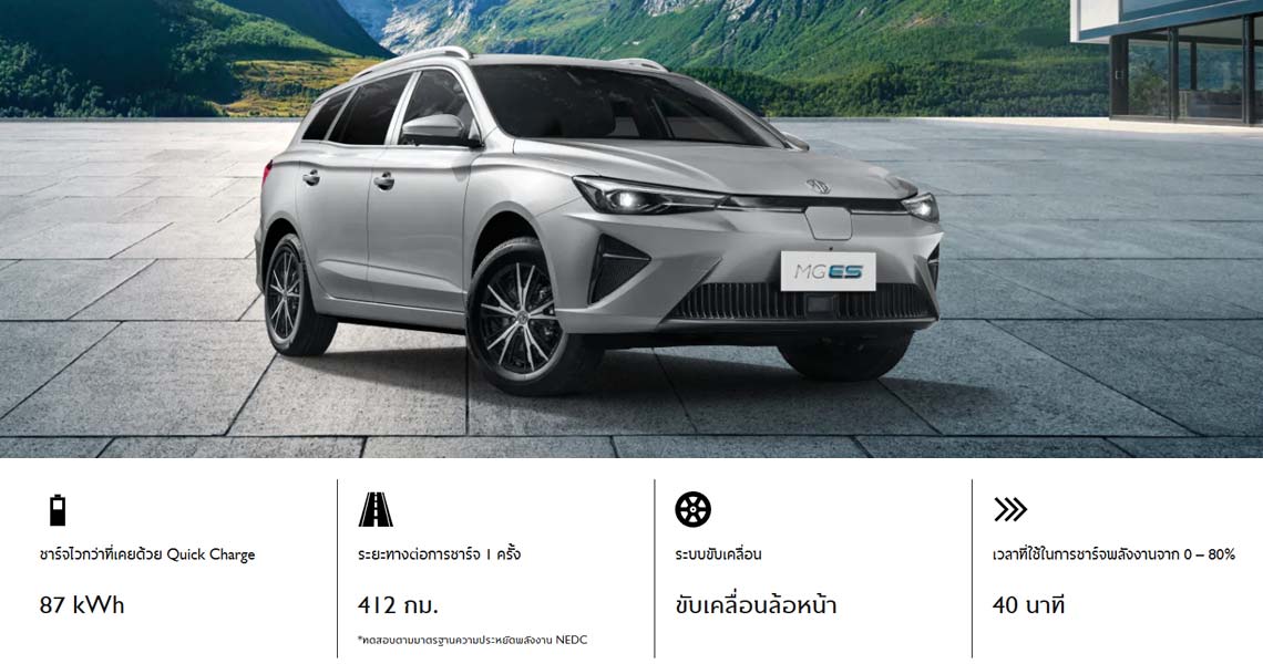 NEW MG ES รถ STATION WAGON 5 ที่นั่ง พลังงานไฟฟ้า 100% ที่มีทุกสิ่ง ครบทุกอย่าง สำหรับการเป็น EV ราคาจำหน่าย 959,000 บาท และมีสีให้เลือถึง 5 สี ภายใต้แนวคิด BRIT DYNAMIC จึงมาพร้อมสมรรถนะที่คงจุดเด่นของ STATION WAGON เอาไว้อย่างดี ทั้งการขับขี่ที่สนุก (PERFORMANCE) ควบคุมรถได้ดั่งใจ (HANDLING) การออกแบบที่เรียบหรู (DESIGN) รวมถึงเทคโนโลยีความปลอดภัยแบบจัดเต็ม (SAFETY) ทั้งยังมีความกว้างที่มากพอสำหรับทั้งครอบครัว (CAPACITY) และเบาะที่ปรับพับได้ตาใจ (FLEXIBILITY) ทำให้ NEW MG ES มีฟังก์ชันที่ครบครัน พร้อมเป็นทุกอย่างเพื่อให้คุณ และครอบครัวเอ็นจอยกับทุกโมเมนต์ได้อย่างเต็มที่สะดวกสบายในทุกการใช้งานตลอดเส้นทาง