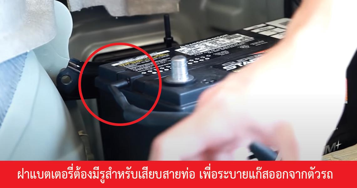 4. แก๊สเสียจากแบตเตอรี่ถูกระบายออกจากตัวรถ ผ่านท่อระบายแก๊ส